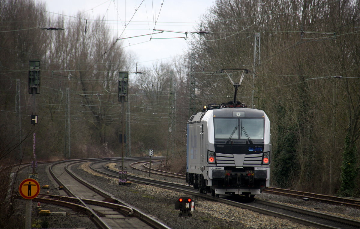 Ein Nachschuss von der 193 810 von der Ruratlbahn kamm als Lokzug die Kohlscheider-Rampe hoch aus Richtung Neuss und fuhr in Richtung Aachen-West und fährt durch Kohlscheid. Aufgenommen von Bahnsteig 1 in Kohlscheid. Bei Wolken und Sturm am Vormittag vom 27.2.2017.