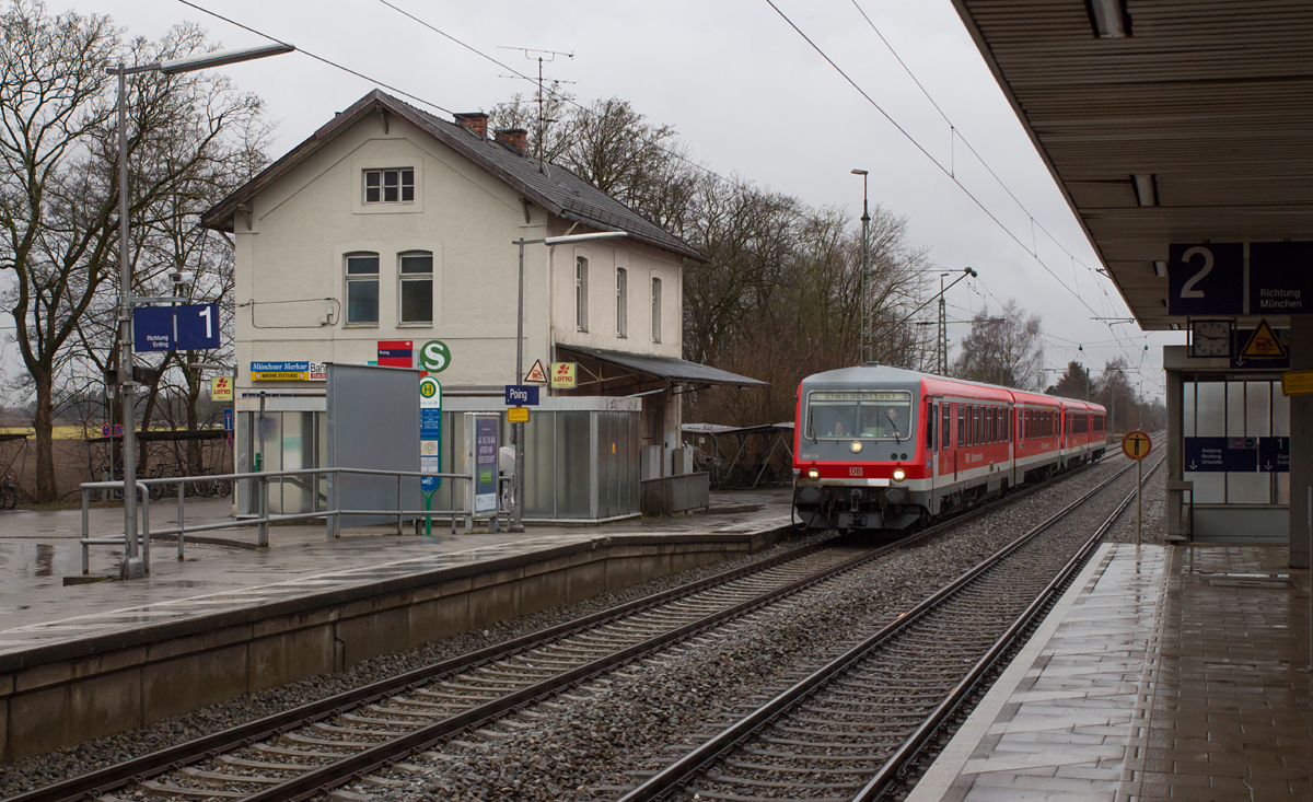 Der erste mit WLAN ausgestattete Mühldorfer 628, der 628 574-6, wurde am 09.03.17 fotografiert, als er auf seinem Weg nach Simbach Poing durchfuhr.