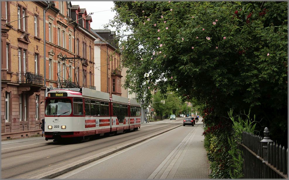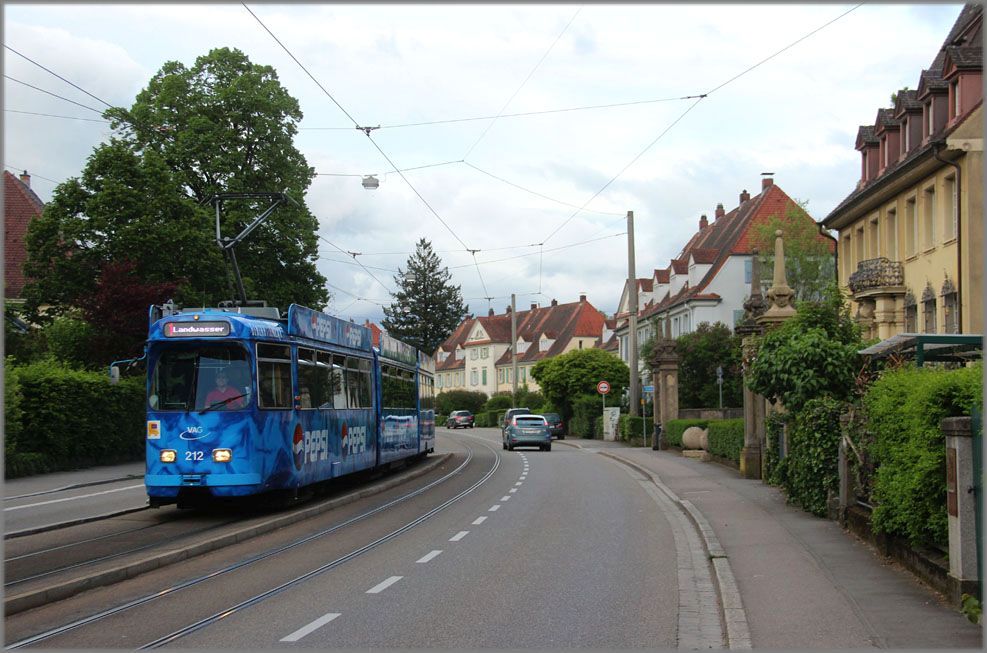 Ein GT8 Wagen im Einsatz auf der Linie 1 in der Hansjakobstraße. 13.5.17