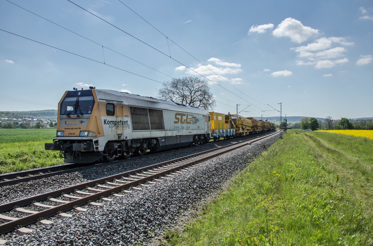 Diese Gleisbaumaschine war teil eines Bauzuges der am 13.05.2017 durch Bahnhof Roman fuhr.