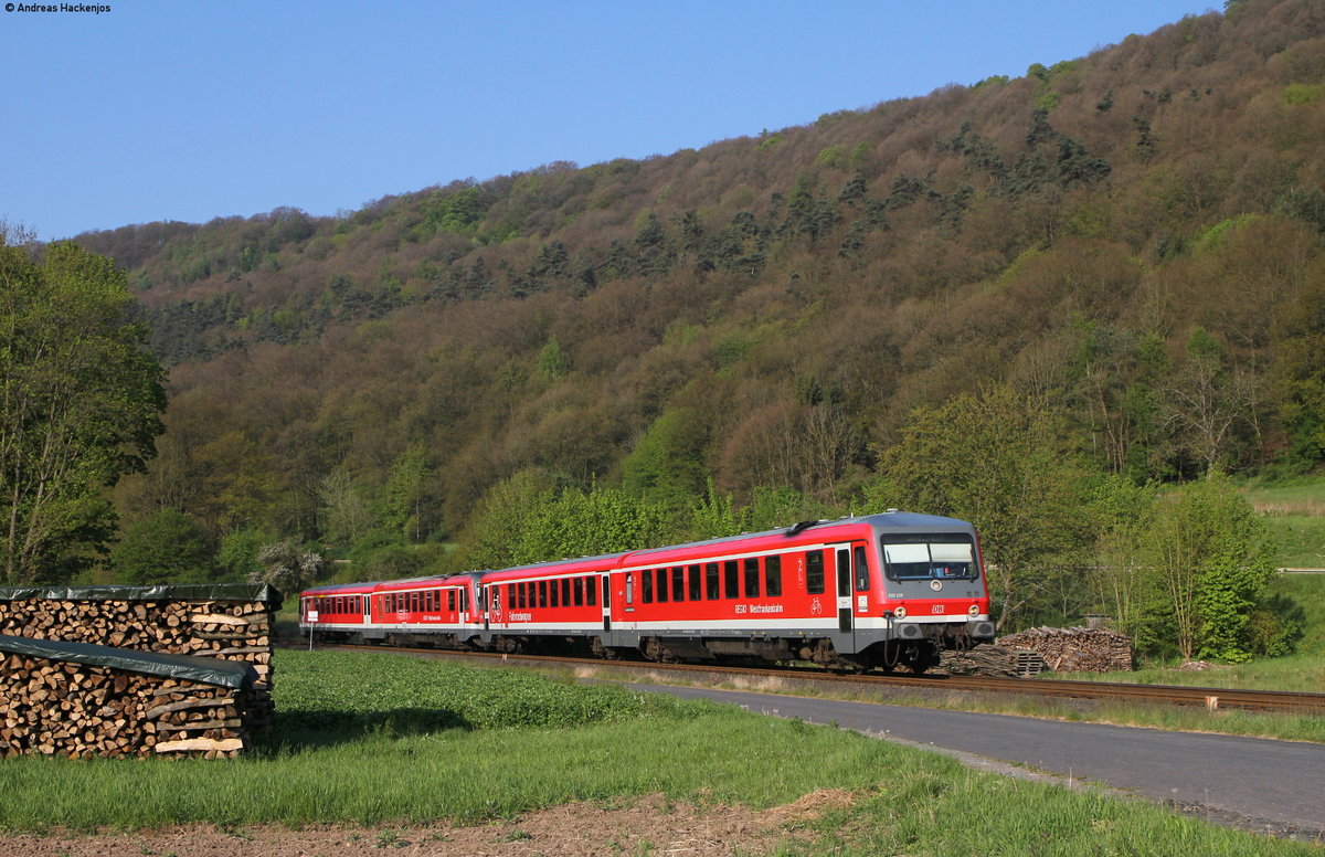 Neben 628 559-7 hatte auch 628 585-2 Sonntagsdienst auf der KBS 948 Wasserburg (Inn) - Grafing (Bahnhof). Er konnte am 21.05.17 vor Ebersberg von Wasserburg (Inn) kommend fotografiert werden. Im Hintergrund erkennt man die Dorfkirche des kleinen Ortes Haselbach.