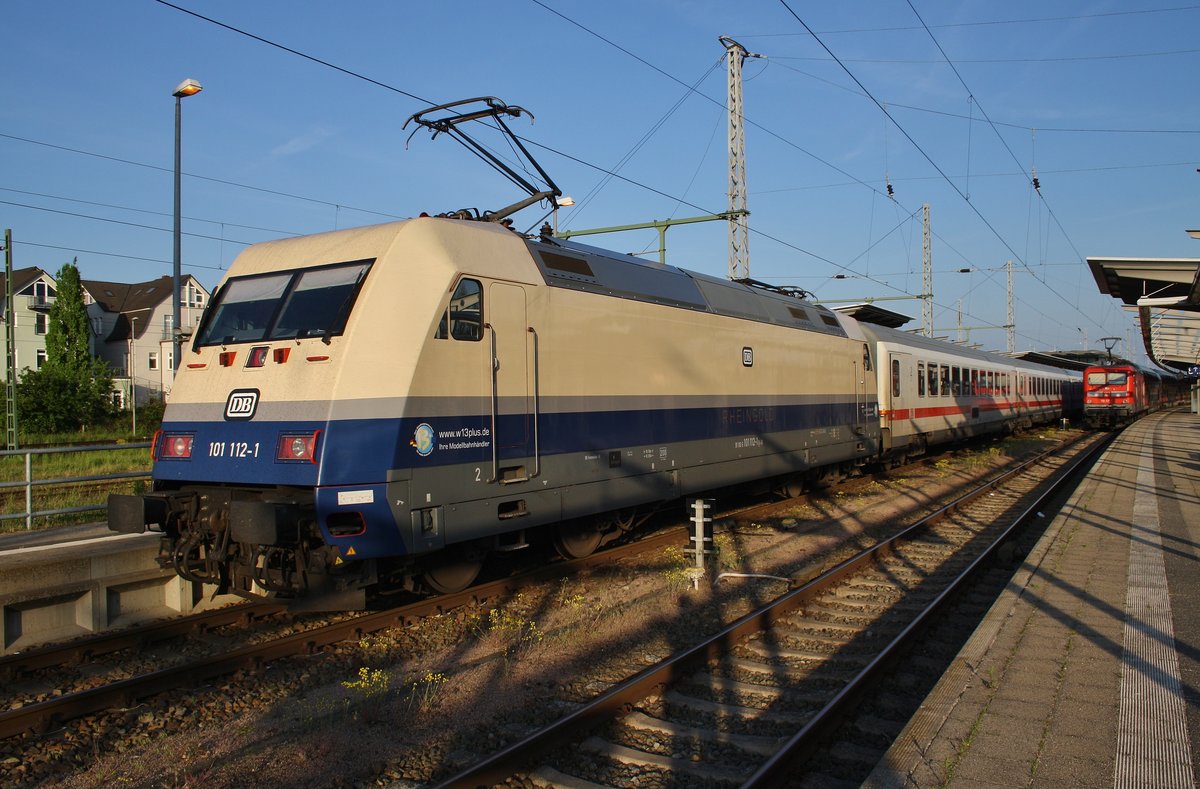 101 112-1 steht am 20.5.2017 mit dem IC2372 von Frankfurt(Main) Hauptbahnhof nach Stralsund Hauptbahnhof im Rostocker Hauptbahnhof.