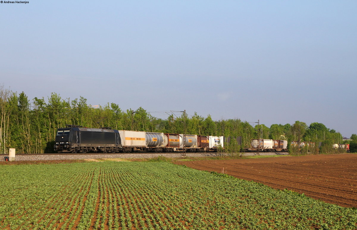185 538 und 185 531 von TX Logistik mit dem verspäteten EKOL am 10. April 2017 bei Hilperting.
