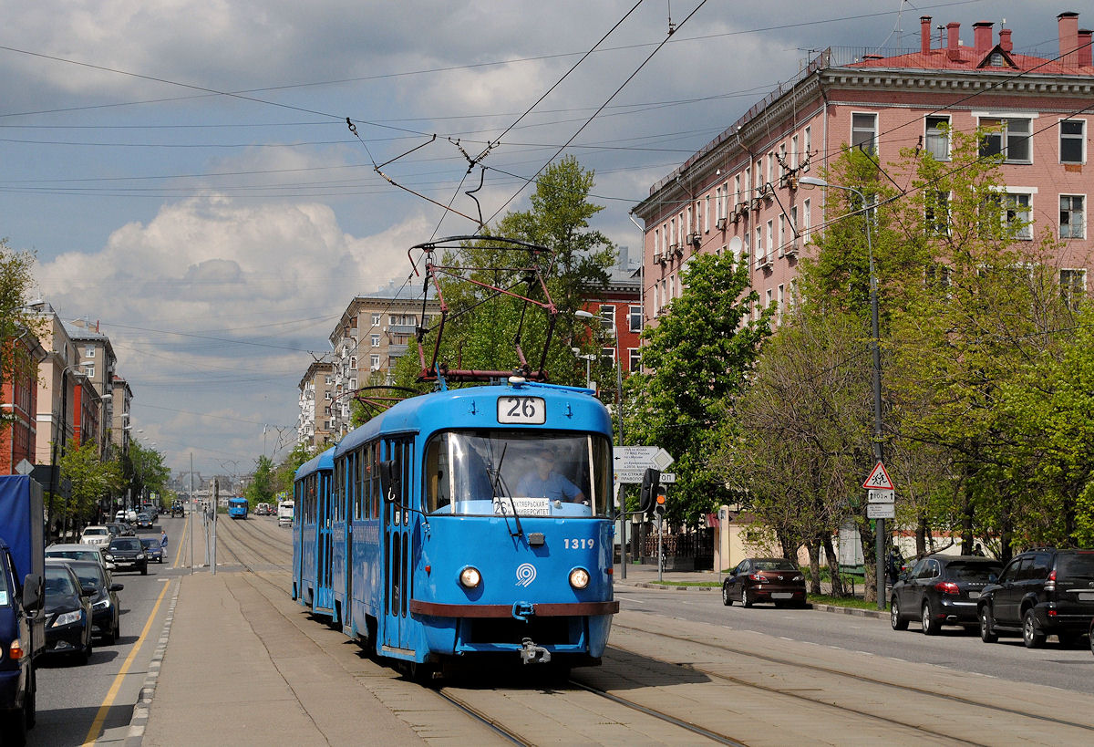 Tw.4077 verbringt im Einsatz auf der Linie 38 seine Ausgleichszeit in der Wendeschleife Metro "Proletarskaja". (20.05.2017)
