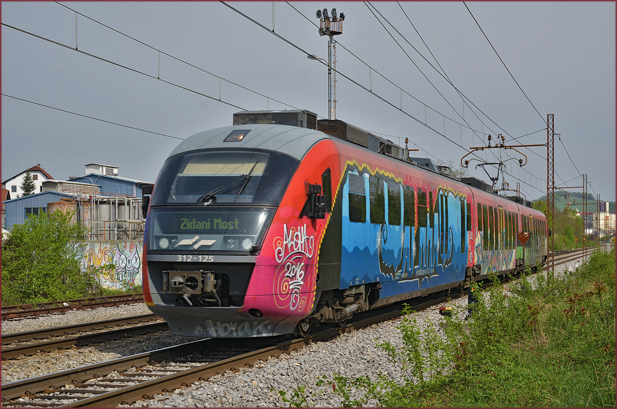 SŽ 312-125 fährt durch Maribor-Tabor Richtung Zidani Most. /12.4.2017