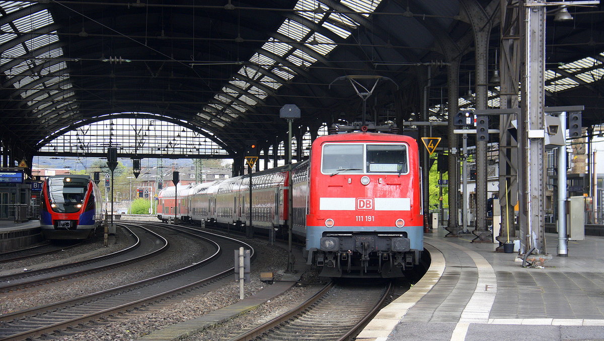 Ein Nachschuss von der 111 191 DB steht mit dem RE4 von Aachen-Hbf nach Dortmund-Hbf. Aufgenommen vom Bahnsteig 2 vom Aachen-Hbf.