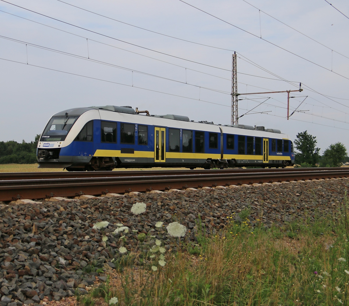 2143.062 in blau-oranger Farbgebung mit dem NEX zwischen Rückersdorf-Harmannsdorf und Stetten.  (06.05.2017)