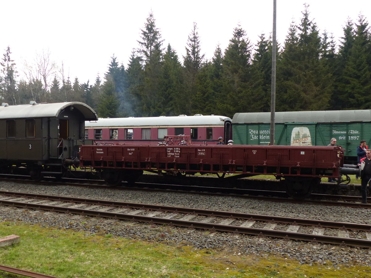 Rennsteigbahn Fahrradtransportwagen der ehem. DR, Gattung Ulm (16031 Klm), in einem Sonderzug aus Themar, am 01.05.2017 im Bahnhof Rennsteig.