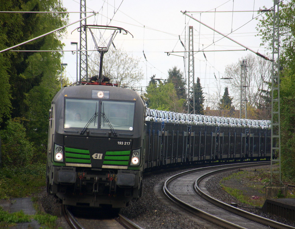 193 217 von der ELL kommt als Umleiter mit einem langen Dacia-Autozug aus Ciumesti(RO) nach Tongeren(B) und kommt aus Richtung Mönchengladbach-Hbf,Rheydt-Hbf,Wickrath,Beckrath,Herrath und fährt durch Erkelenz in Richtung Baal,Hückelhoven-Baal,Brachelen,Lindern,Süggerath,Geilenkirchen,Frelenberg,Zweibrüggen,Übach-Palenberg,Rimburg,Finkenrath,Hofstadt,Herzogenrath, Kohlscheid,Richterich,Laurensberg,Aachen-West.