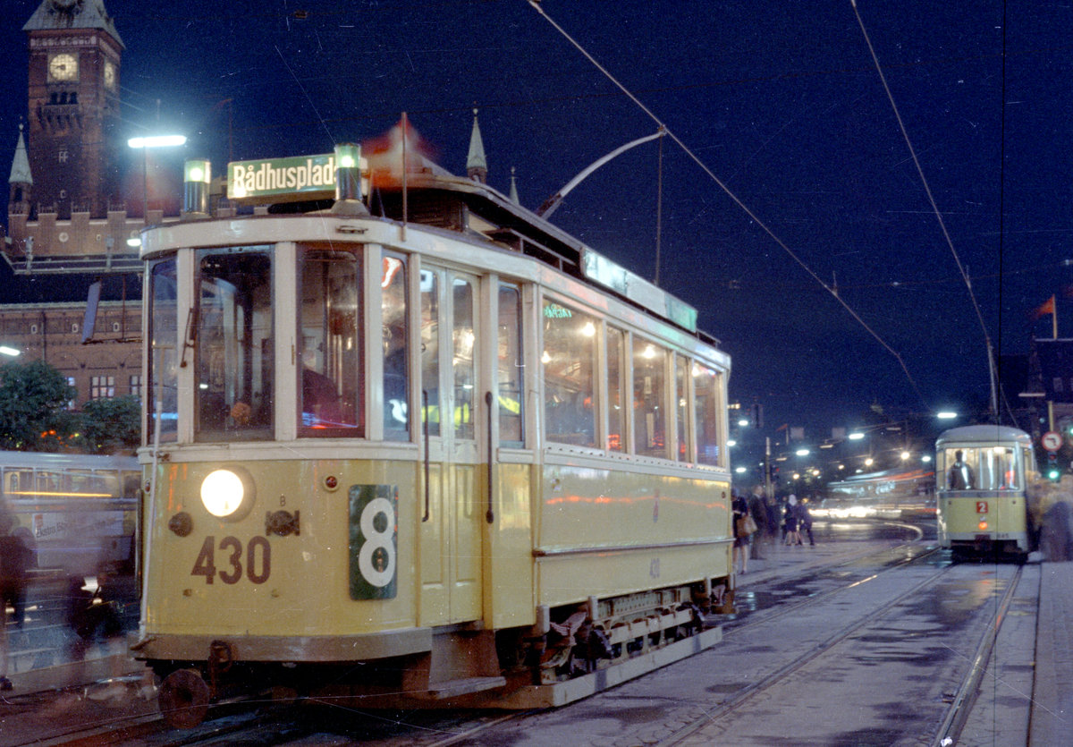 København / Kopenhagen Københavns Sporveje: Museumstriebwagen 430 auf der anlässlich des 350jährigen Jubiläums des Stadtviertels Christianshavn für zwei Tage wiedererstandenen SL 8. Ort: Rådhusplads (: Rathausplatz). Datum: 17. August 1968. - Scan von einem Farbnegativ. Film: Kodak Kodacolor X Film.