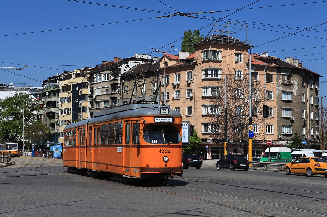 Alter Straßenbahn-Triebwagen Ganz KCSV6 510 in der Wendeschleife am Bahnhof von Debrecen, 26.6.2016
