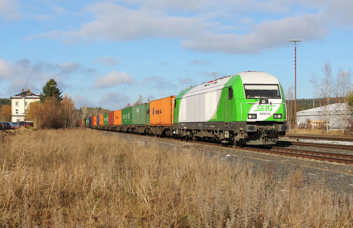 ER20-03 SETG - Salzburger Eisenbahn TransportLogistik GmbH, Salzburg (223 103-3) zu sehen am 14.11.17 in Wunsiedel-Holenbrunn mit dem Containerzug für Wiesau.