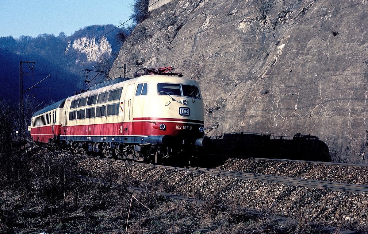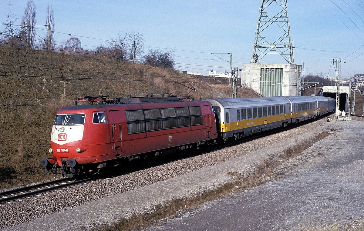Die 101 024 mit einem RE nach München am 04.11.2017 unterwegs bei Fahlenbach.