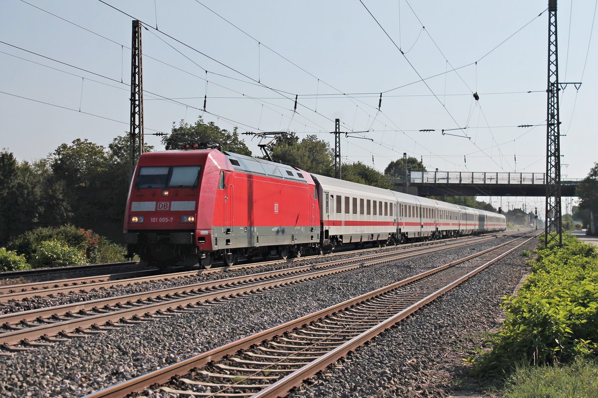 Am 13.09.2016 bespannte 101 005-7 den IC 206 (Zürich HB - Frankfurt (Main) Hbf), als sie durch den bahnhof von Müllheim (Baden) gen Freiburg (Breisgau) fuhr.
