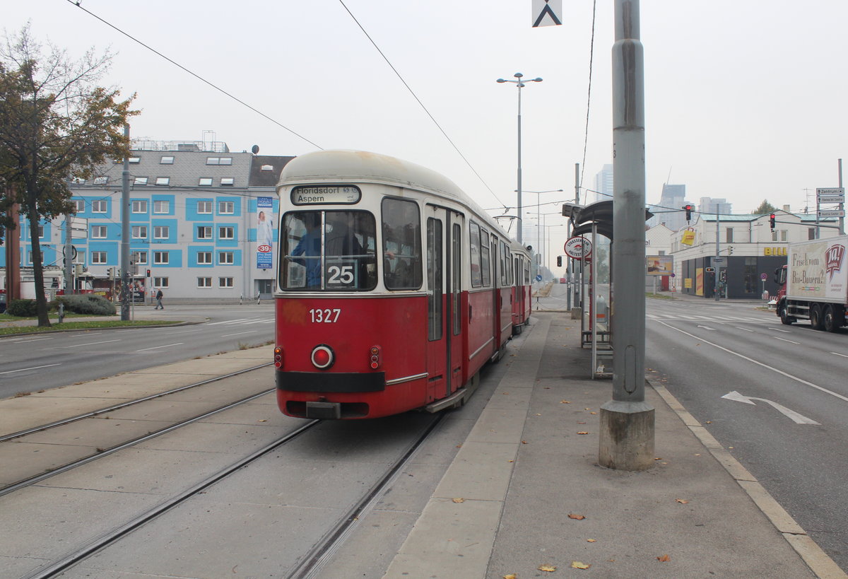 Wien Wiener Linien SL 25 (c4 1327 + E1 4733) XXII, Donaustadt, Wagramer Straße / Erzherzog-Karl-Straße (Hst. Kagraner Brücke) am 18. Oktober 2017.