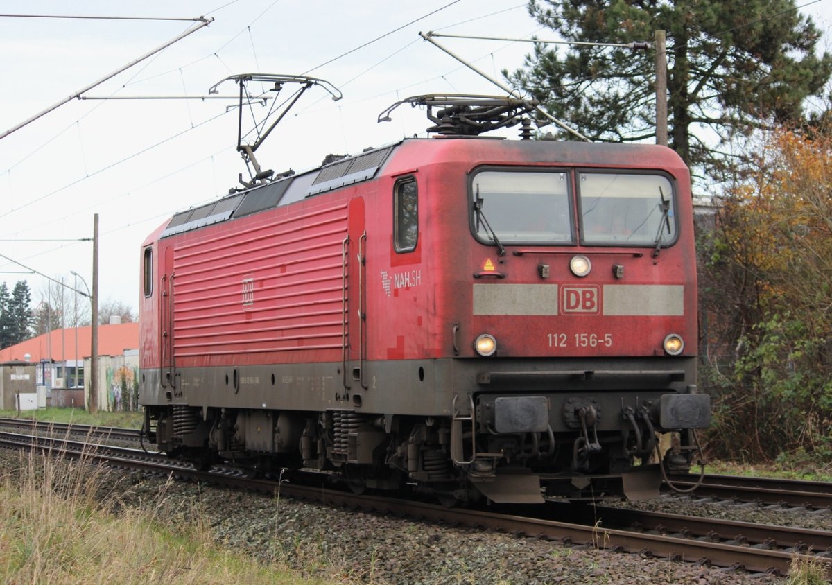 112 156-5 am 20.11.17 in Neumünster einfahrend. Wenig später fuhr die Lok wieder solo zurück nach Kiel.