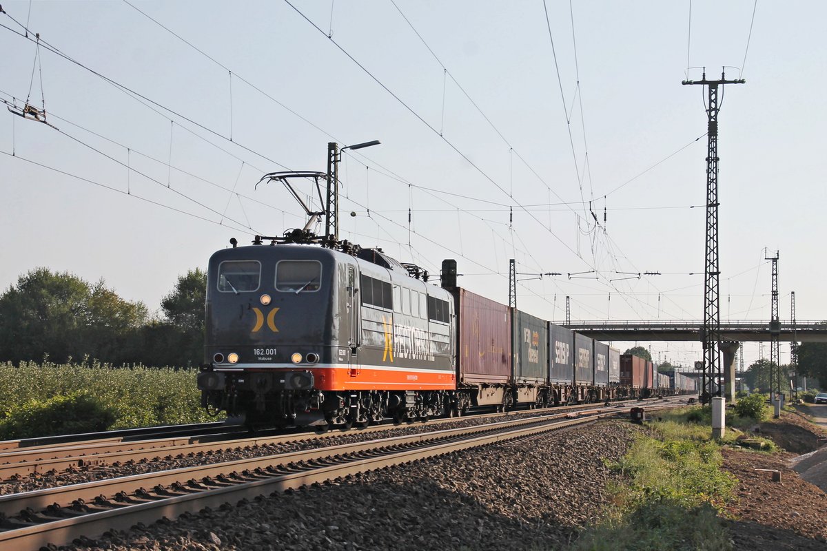 Am 13.09.2016 bespannte Hectorrail 162.001 (151 013-0)  Mabuse  einen Containerzug nach Krefeld-Linn, als sie durch Müllheim (Baden) gen Freiburg (Breisgau) fuhr.
