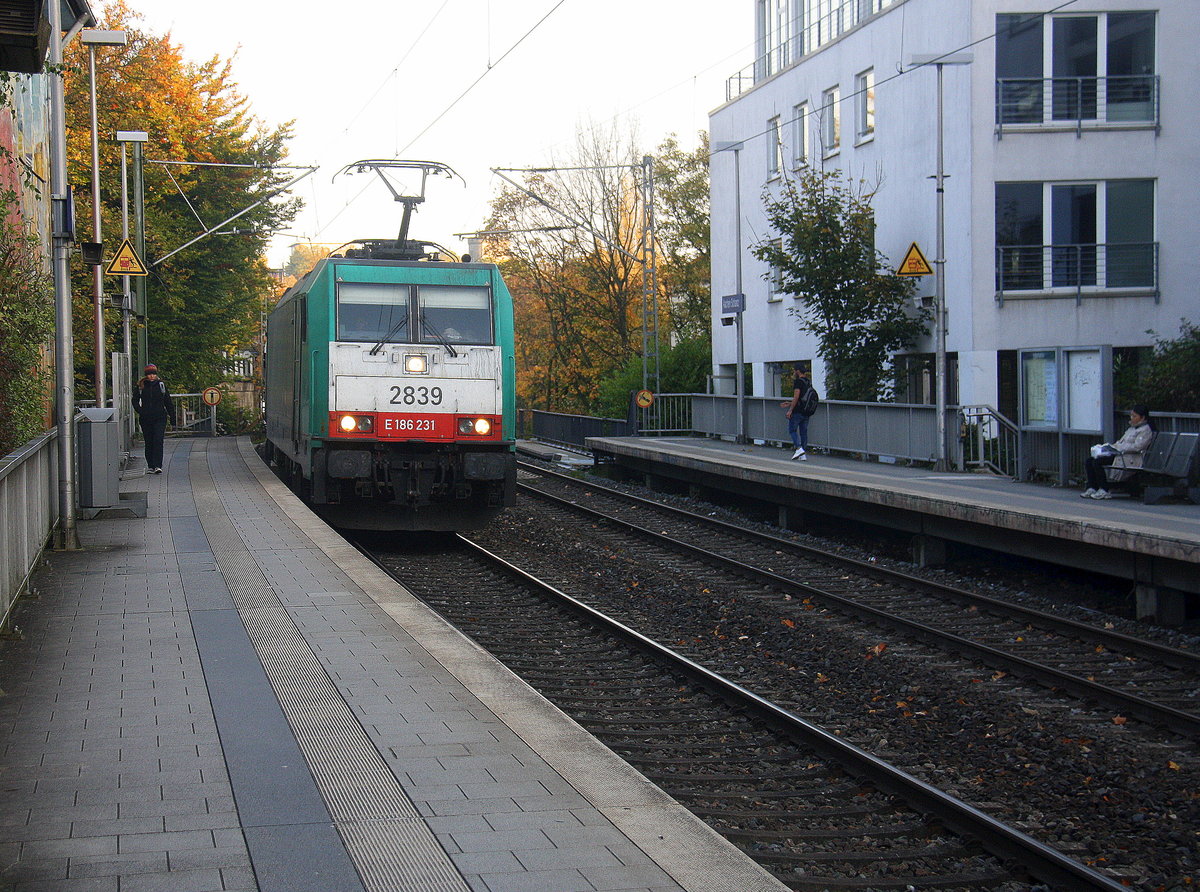 Die Cobra 2839 kommt durch Aachen-Schanz mit einem Kesselzug aus Antwerpen-BASF(B) nach Ludwigshafen-BASF(D) und kommt aus Richtung Aachen-West und fährt in Richtung Aachen-Hbf,Aachen-Rothe-Erde,Stolberg-Hbf(Rheinland)Eschweiler-Hbf,Langerwehe,Düren,Merzenich,Buir,Horrem,Kerpen-Köln-Ehrenfeld,Köln-West,Köln-Süd. Aufgenommen vom Bahnsteig von Aachen-Schanz. Bei Sonnenschein am Morgen vom 19.10.2017.