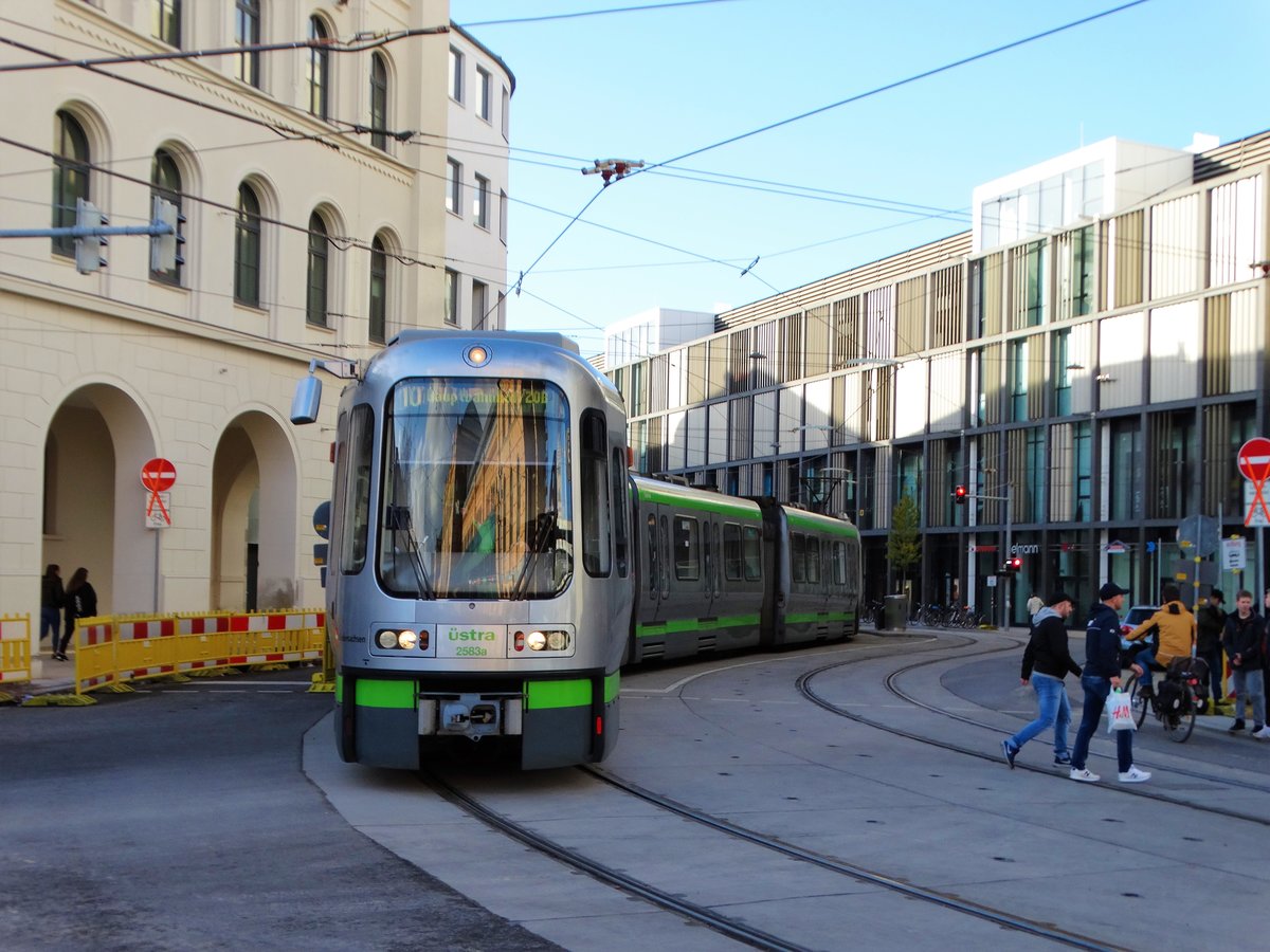 Wagen 682 der Rostocker Straßenbahn am 14.10.17 in die Haltestelle Gerberbruch einfahrend.