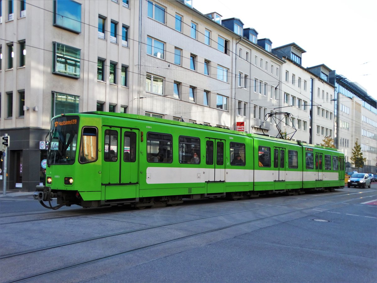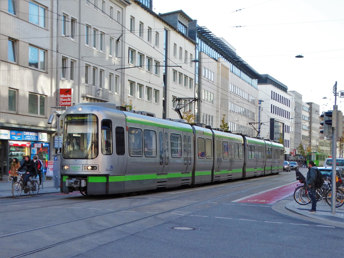 Wagen 663 der Rostocker Straßenbahn am 14.10.17 durch die Richard-Wagner-Straße fahrend.