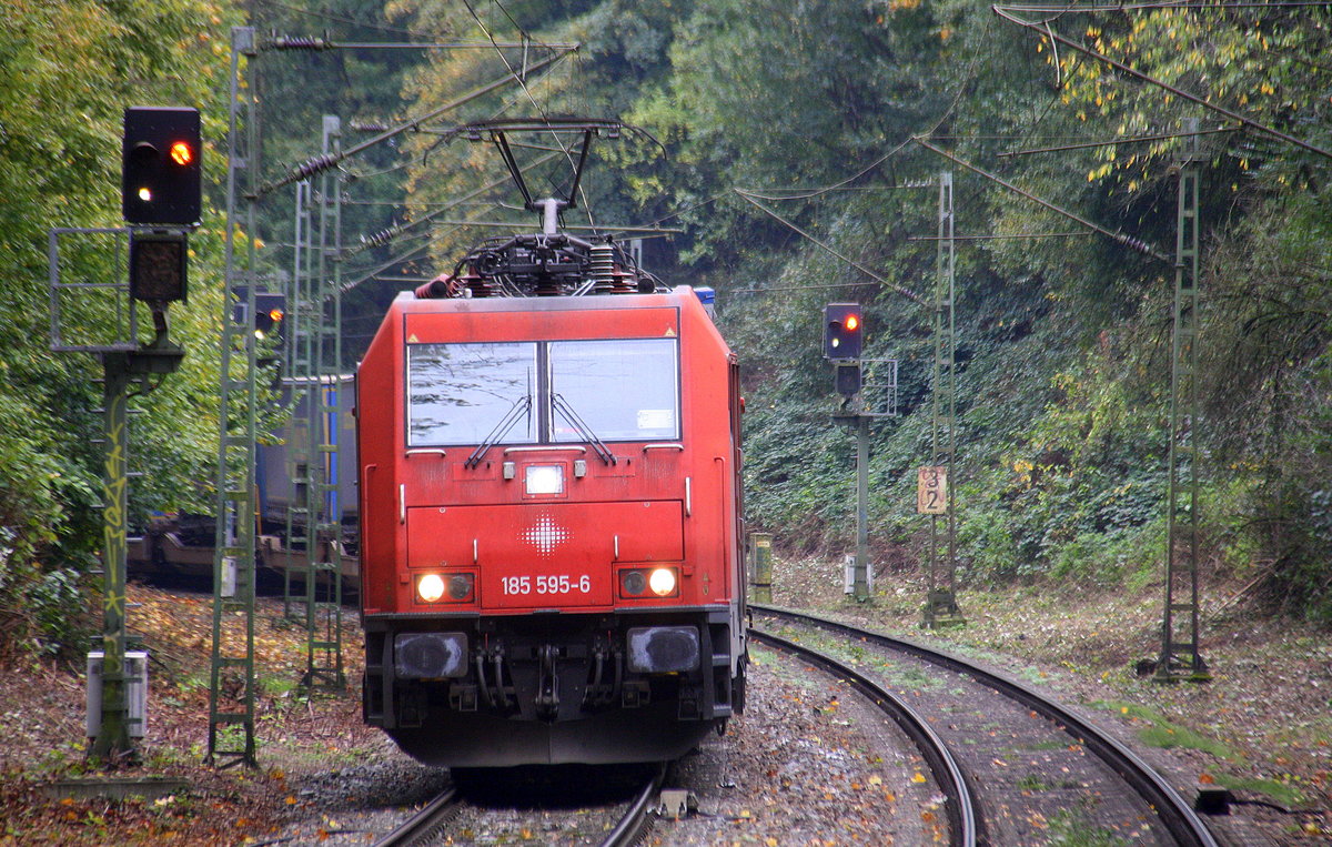 185 595-6 "Ruth" von Crossrail kommt aus Richtung Köln,Aachen-Hbf und fährt durch Aachen-Schanz mit einem LKW-Walter-Zug aus Novara(I) nach Genk-Goederen(B) und fährt in Richtung Aachen-West.