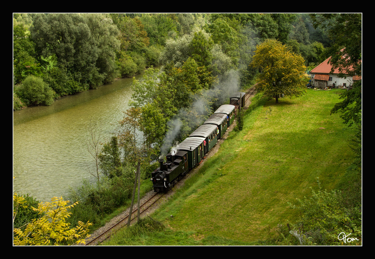 Die Schmalspurdampflok 298.102 dampft mit einem Adventzug von Steyr nach Grünburg. Sommerhubermühle 4.12.2016
