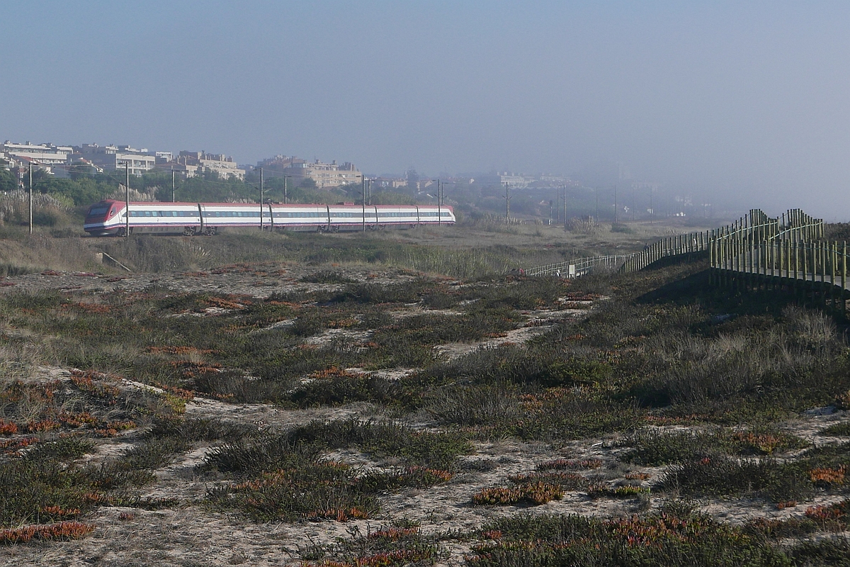 Alfa Pendular 126, Porto Campanhã - Lissabon Santa Apolónia, wurde am 06.10.2017 in der Dünenlandschaft zwischen Granja und Espinho fotografiert.