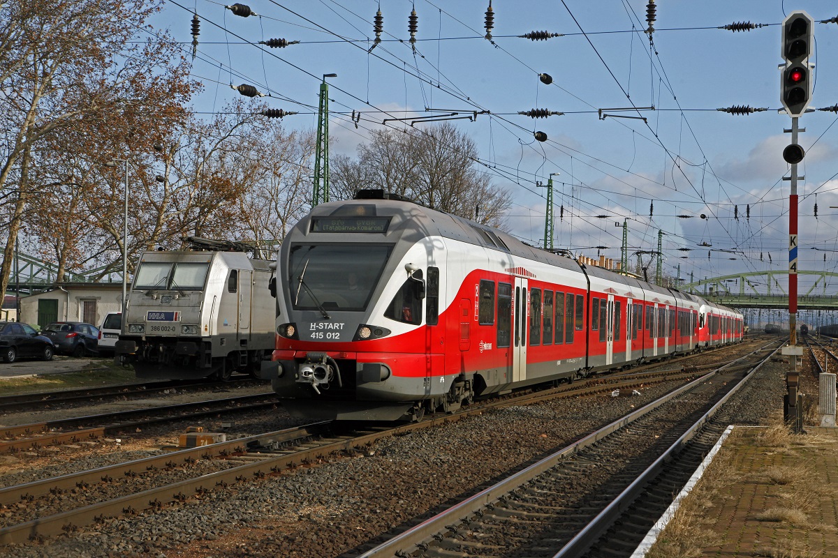 480 019 fährt am 27.11.2017 mit einen Intercity in den Bahnhof Komarom ein.