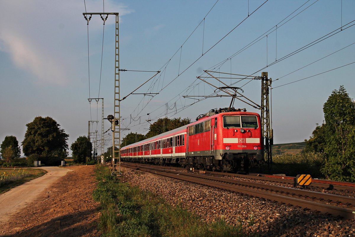 Nachschuss auf die Freiburger 111 064, als sie am 13.09.2016 ihre RB (Basel Bad Bf - Offenburg) bei Müllheim (Baden) gen Buggingen schob.