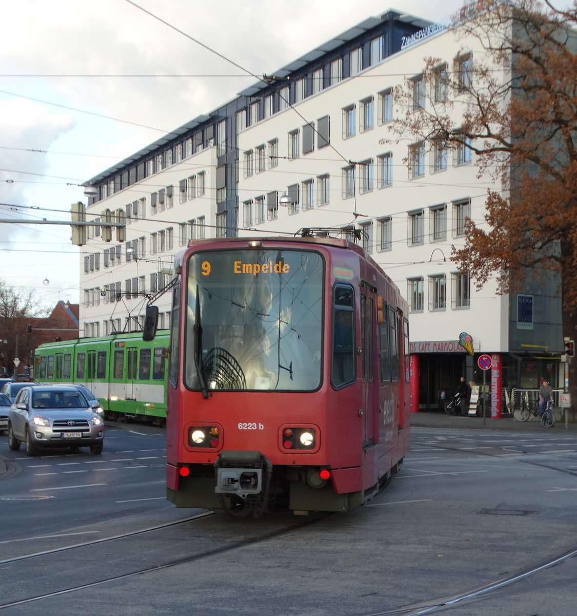 ÜSTRA Hannoversche Verkehrsbetriebe TW6000 Wagen 6223 und 6146 als Doppeltraktion am 17.11.17 in Hannover