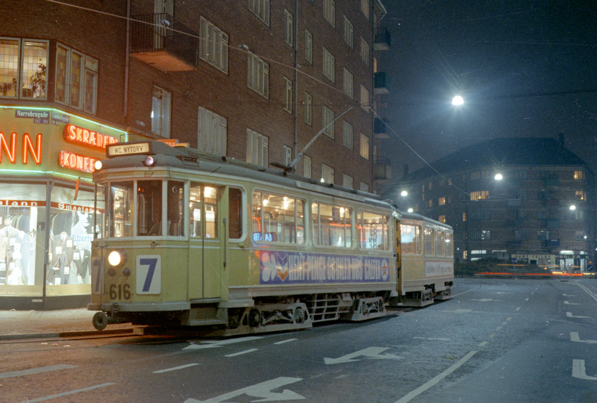 København / Kopenhagen Københavns Sporveje SL 7 (Tw 616 + Bw 15xx) København N, Nørrebro, Lundtoftegade / Nørrebro Station / Nørrebrogade am 28. Oktober 1968. - Scan eines Farbnegativs. Film: Kodak Kodacolor X.