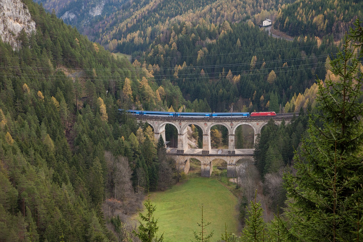1216.. mit Railjet auf dem Kalte-Rinne-Viadukt am 2.11.2017.