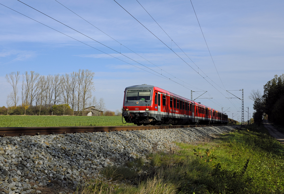 628 568-8 und ein zweiter VT dieser Baureihe waren am Mittag des 02.11.17 von Mühldorf nach München Hbf bei Poing unterwegs.