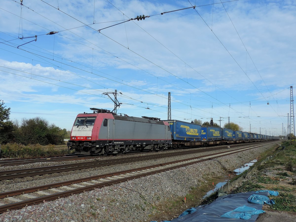 Niederschopfheim - 30.10.17 : vielleicht meine letzte Fototour vor dem Aufbau der Lärmschutzmauer. Crossrail Lok 185 590 mit dem LKW Walter Zug.