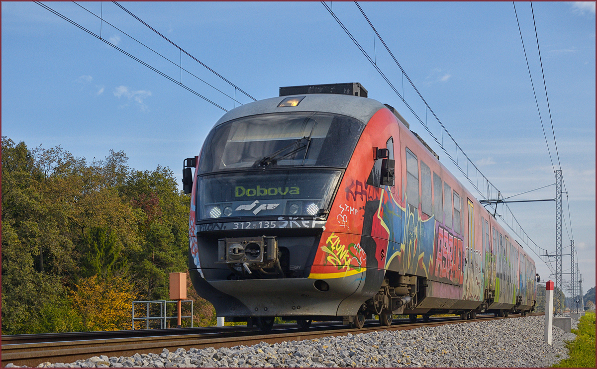 SŽ 363-027 zieht Erzzug an Črešnjevec vorbei Richtung Norden. /4.10.2017