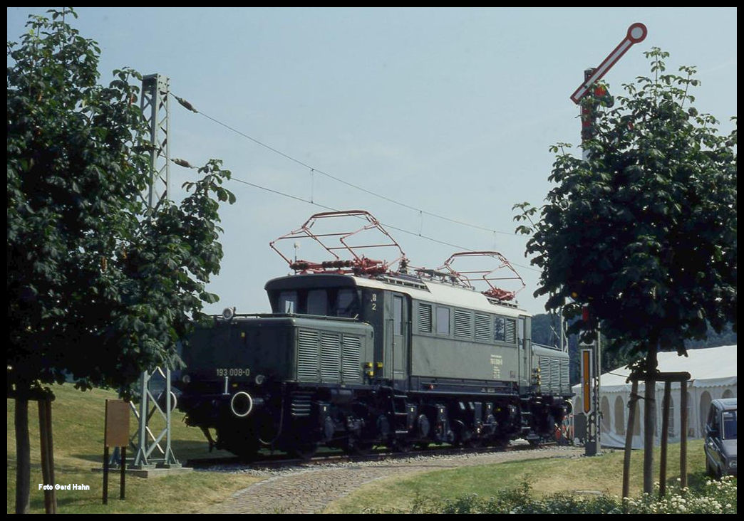 Am 8.7.1991 war an einem Tag der offenen Tür auch das Eisenbahn Denkmal im Kernkraftwerk Neckarwestheim zugängig. Dort stand 193008 auf dem Denkmal Gleis!