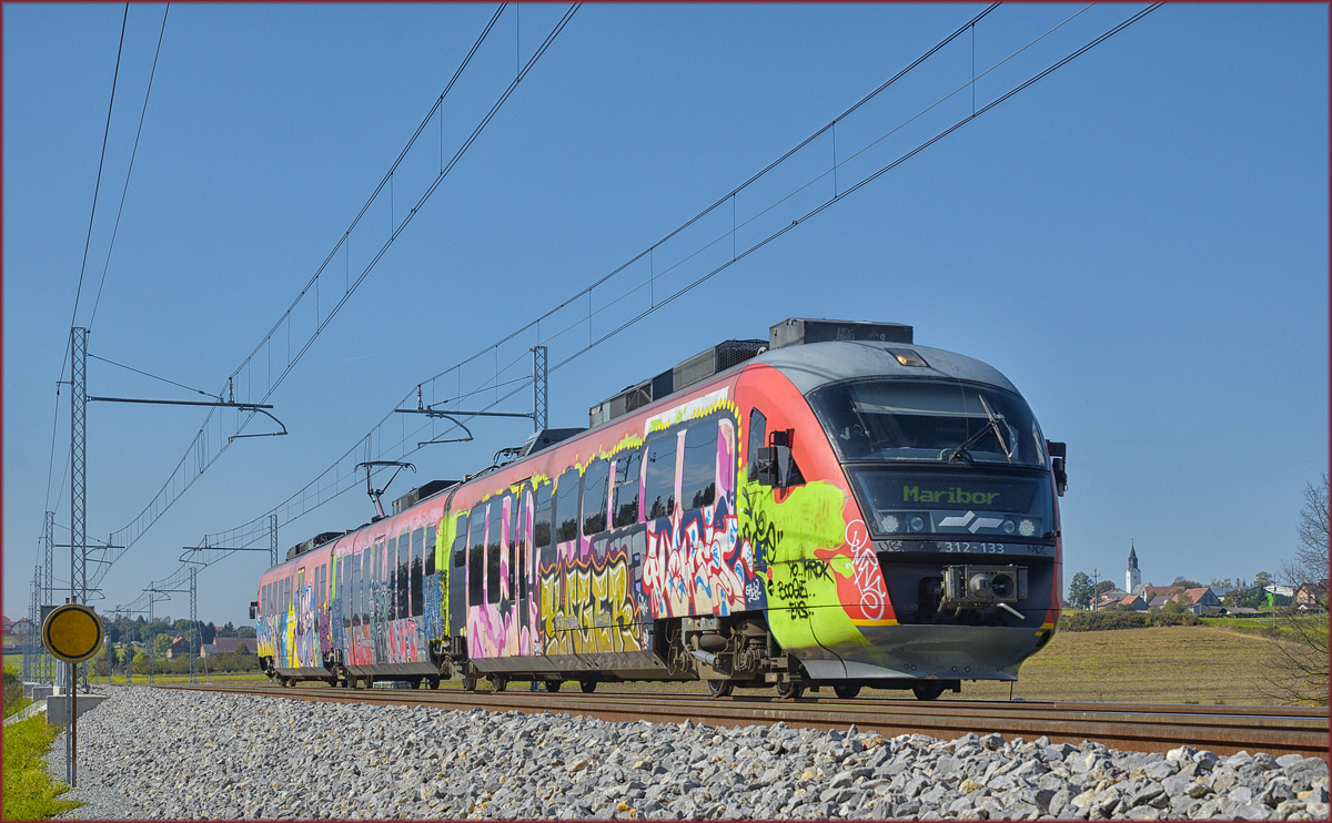 SŽ 312-133 fährt an Črešnjevec vorbei Richtung Maribor. /10.10.2017