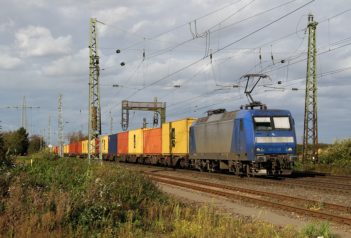 193 777 (Lokomotion) zu sehen in Schöps mit dem AKE Rheingold am 22.10.17. Der Zug fuhr zu seinen Zielen in den Süden.