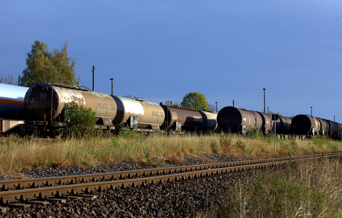 Teleblick auf abgestellte Güterwagen Altenburg Nord. 22.10.2017 09:11 Uhr.
