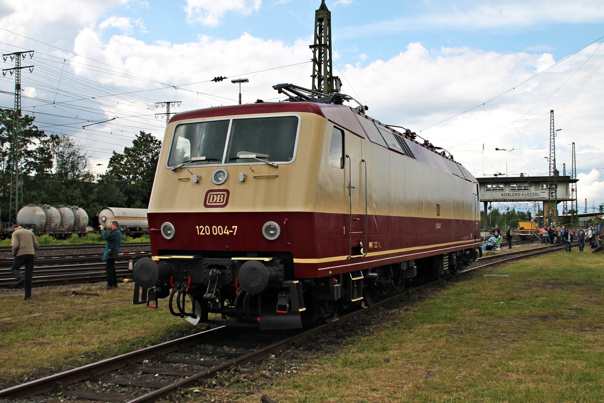 Portrait von der Vorserien 120er (120 004-7), welche während dem Sommerfest vom DB Museum auf derem Gelände in Koblenz Lützel stand.