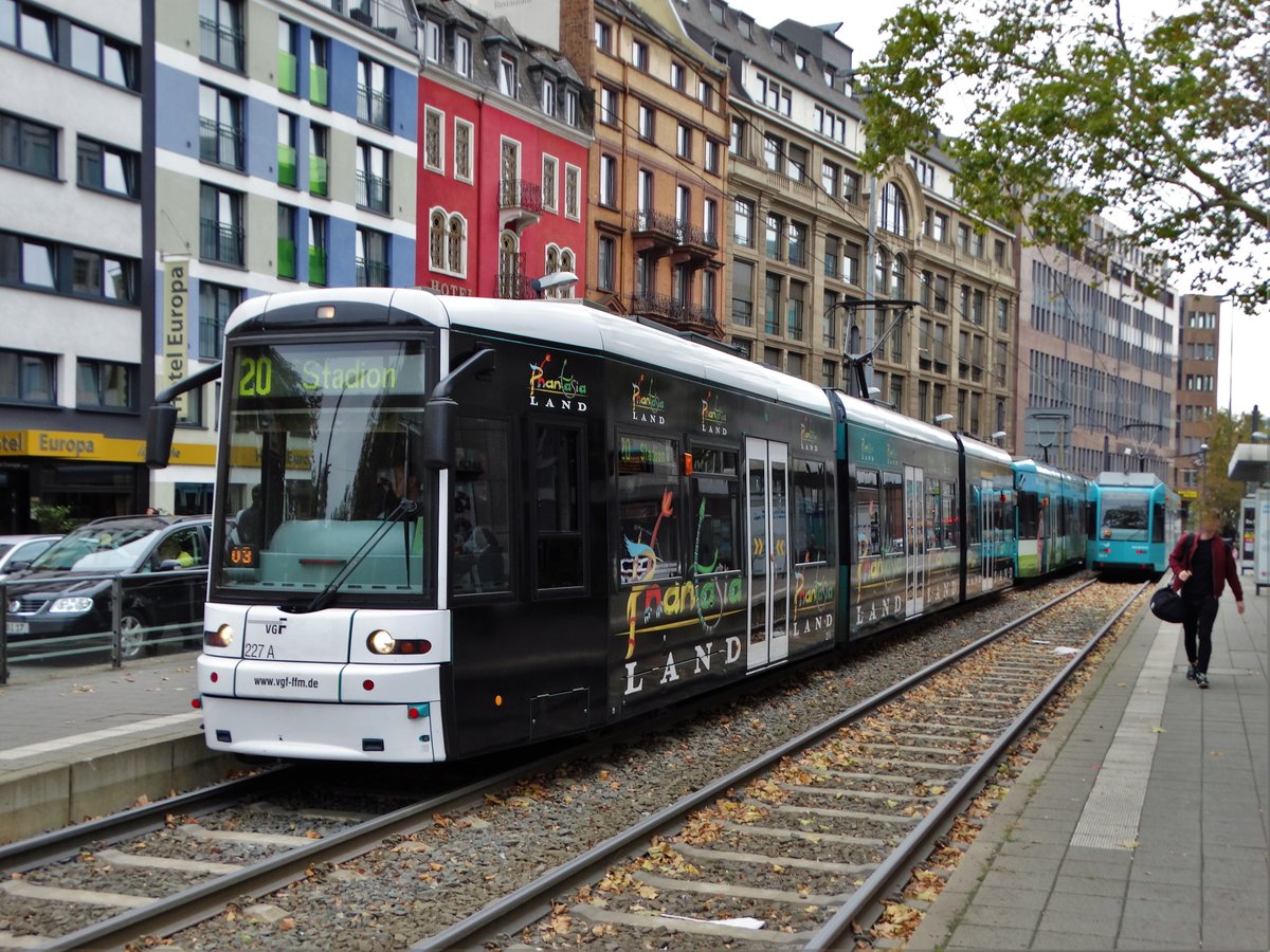 VGF Bombardier S-Wagen 227 und 2xx als Doppeltraktion am 21.10.17 in Frankfurt am Main Basler Platz