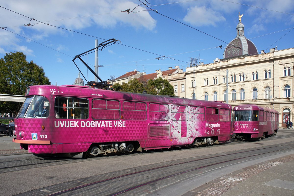 Kroatien / Straßenbahn Zagreb / Tramvaj Zagreb / Zagrebački Električni Tramvaj (ZET): Tatra T4YU - Wagen 472, aufgenommen im Oktober 2017 am Hauptbahnhof in Zagreb.