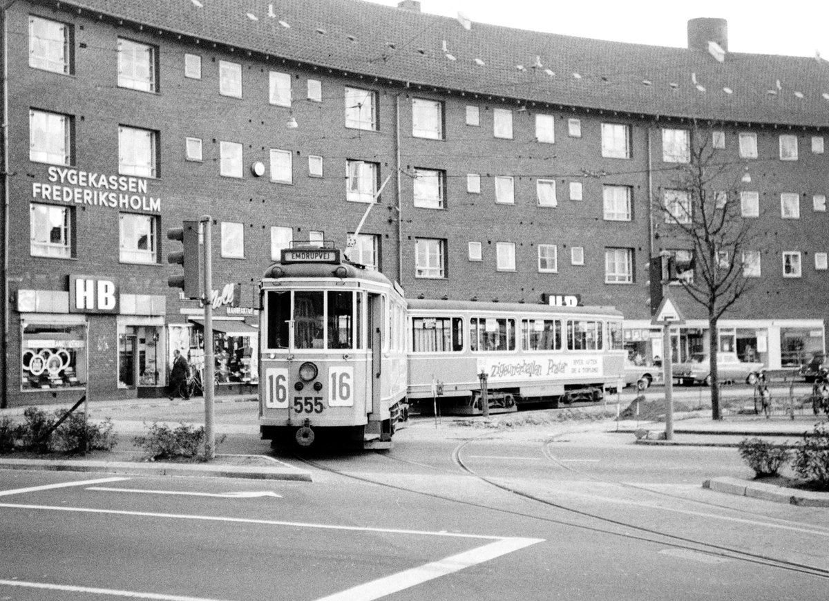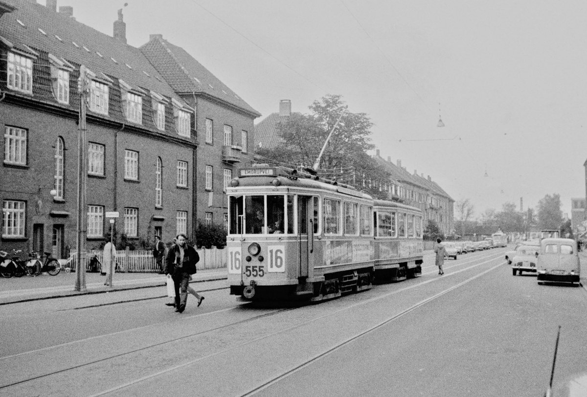 København / Kopenhagen Københavns Sporveje SL 16 (Tw 555 + Bw 15xx) København SV (: Südwest), Frederiksholm, Borgbjergsvej im Oktober 1968. - Scan von einem S/W-Negativ. Film: Ilford HP4.