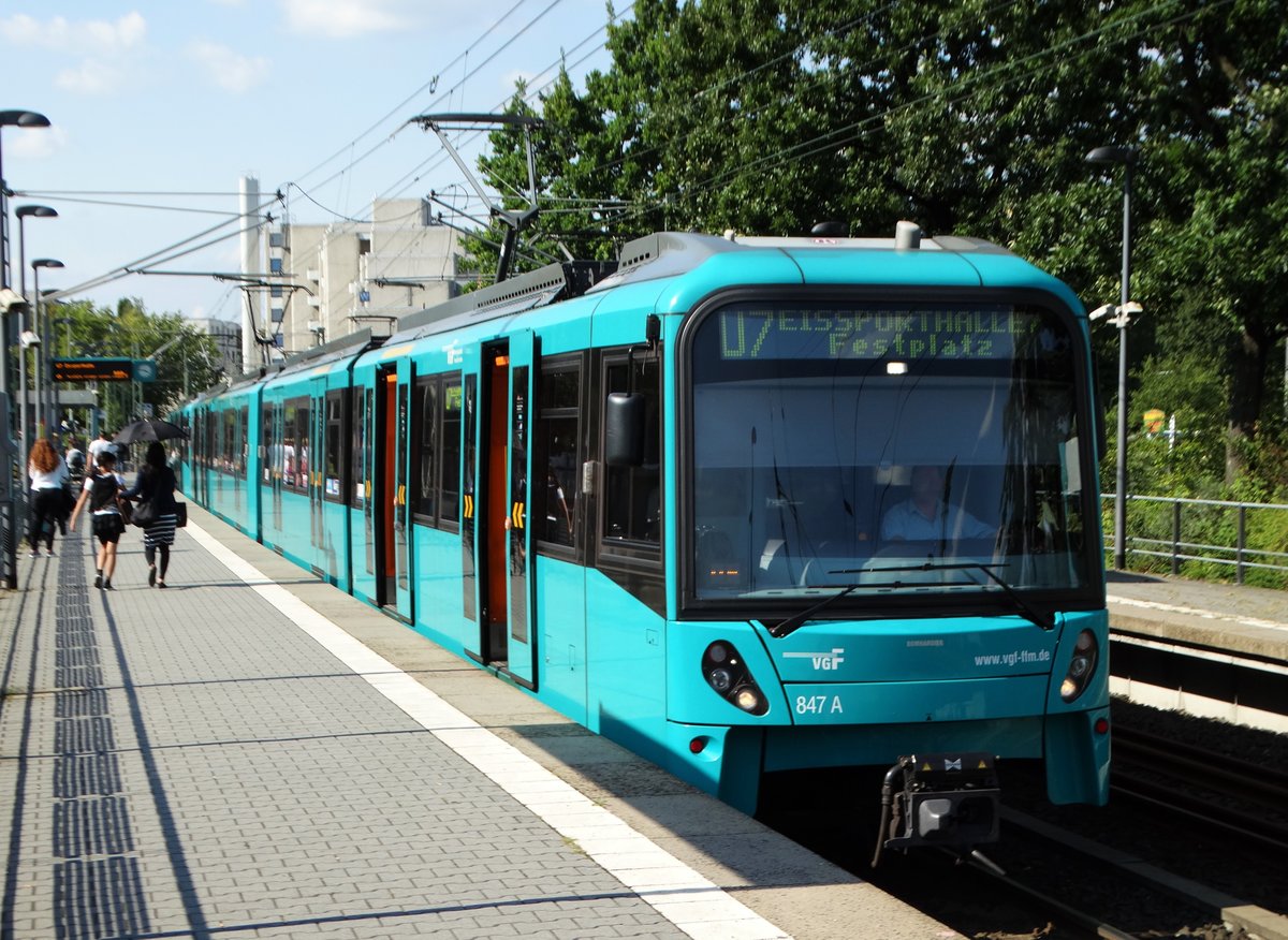 VGF Bombardier U5-50 Wagen 847 und U5-25 Wagen 655 am 01.09.17 in Frankfurt Industriehof