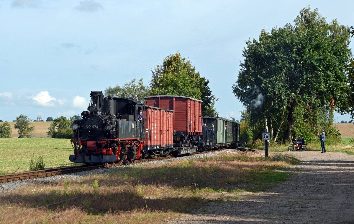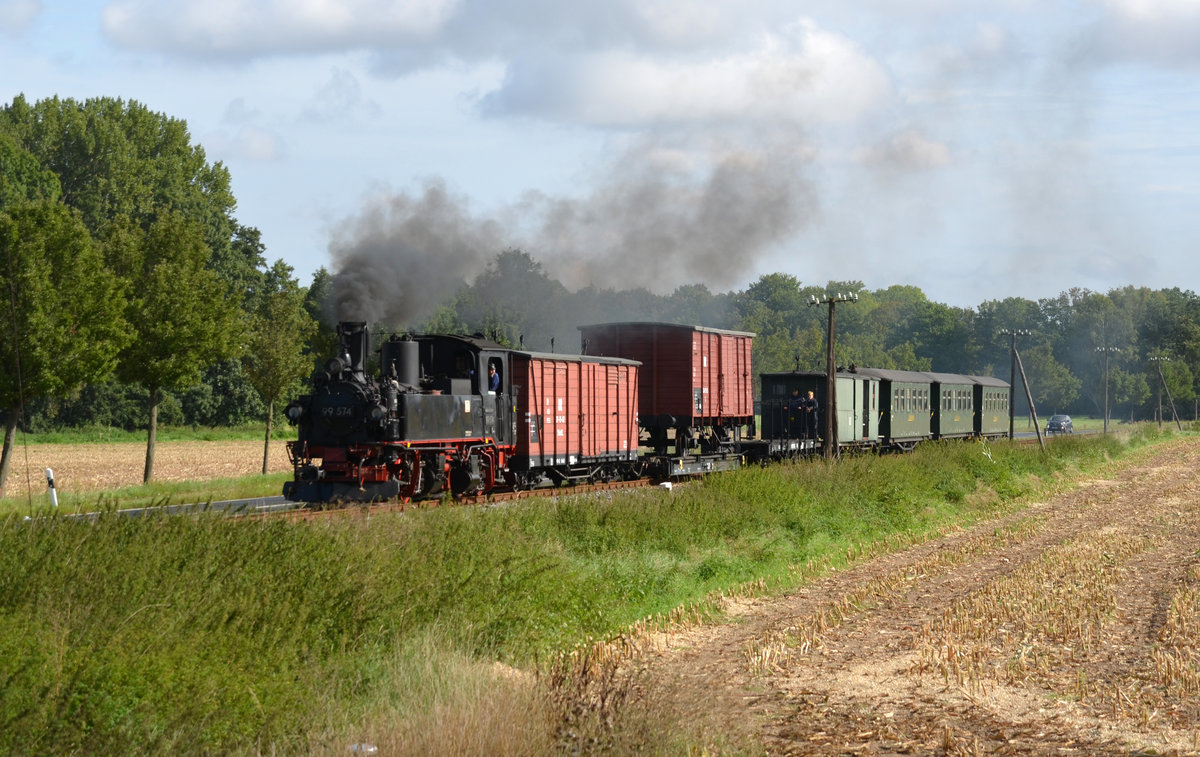 99 574 befand sich gerade auf dem Weg in Richtung Mügeln und befindet sich hier gerade bei Naundorf!