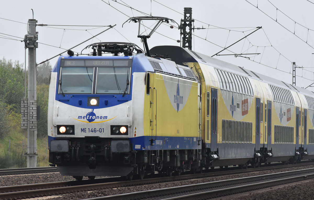Täglicher Metronom als RE3 kommend aus Hamburg, in Richtung Lüneburg unterwegs mit der ME 146-01. Schön immernoch Loks des Metronoms mit ME Kennung zusehen. Höhe Bardowick 27.09.2017