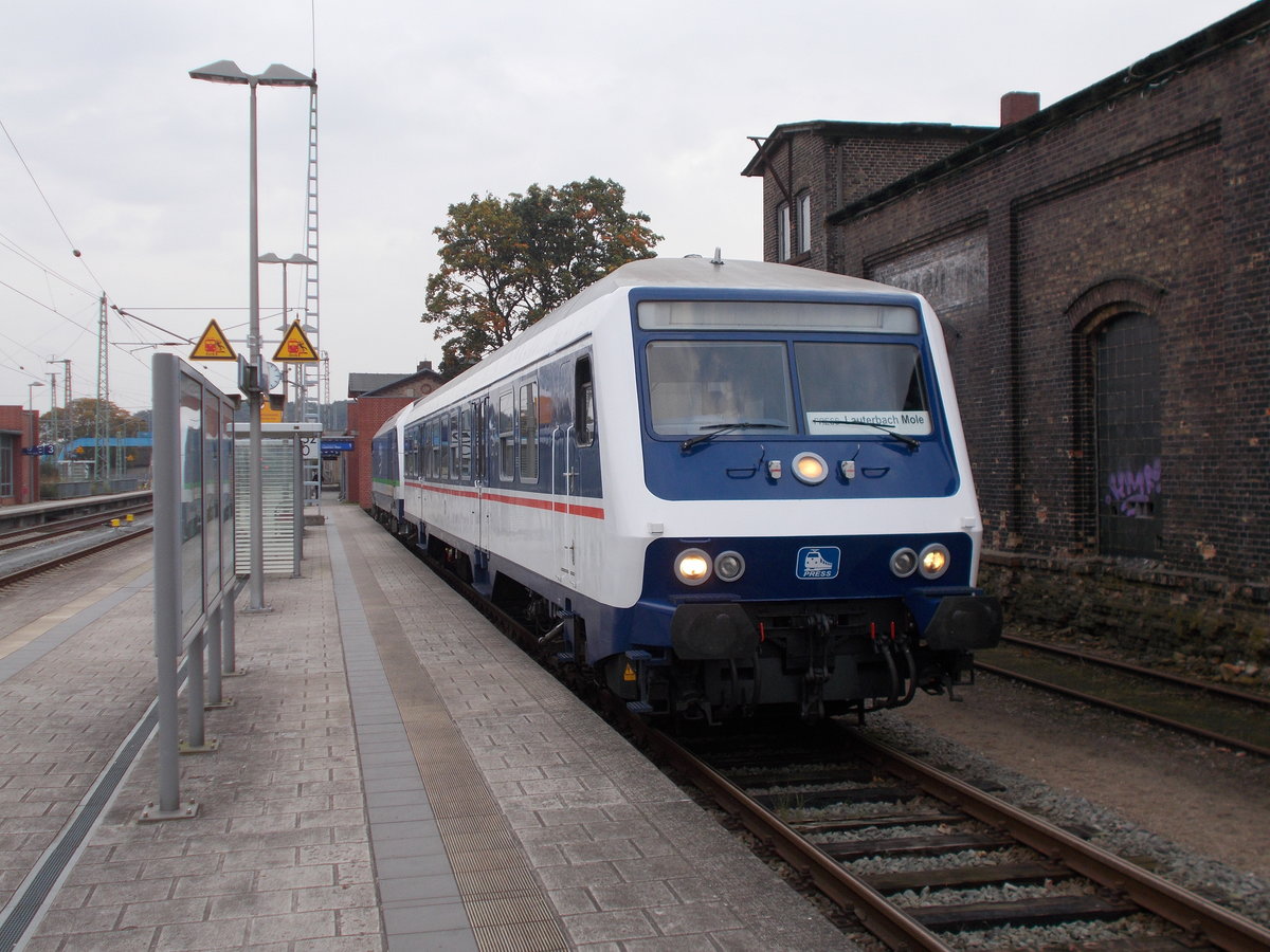 Verschiedene Fahrzeug Generationen begegneten sich am 15.9.2017 in Detmold. VT 2.07 der Eurobahn fährt hier um 16.43 Uhr nach Bielefeld ab und passiert den Museumszug der Osnabrücker Dampflok Freunde, der mit V 65001 bespannt ist.