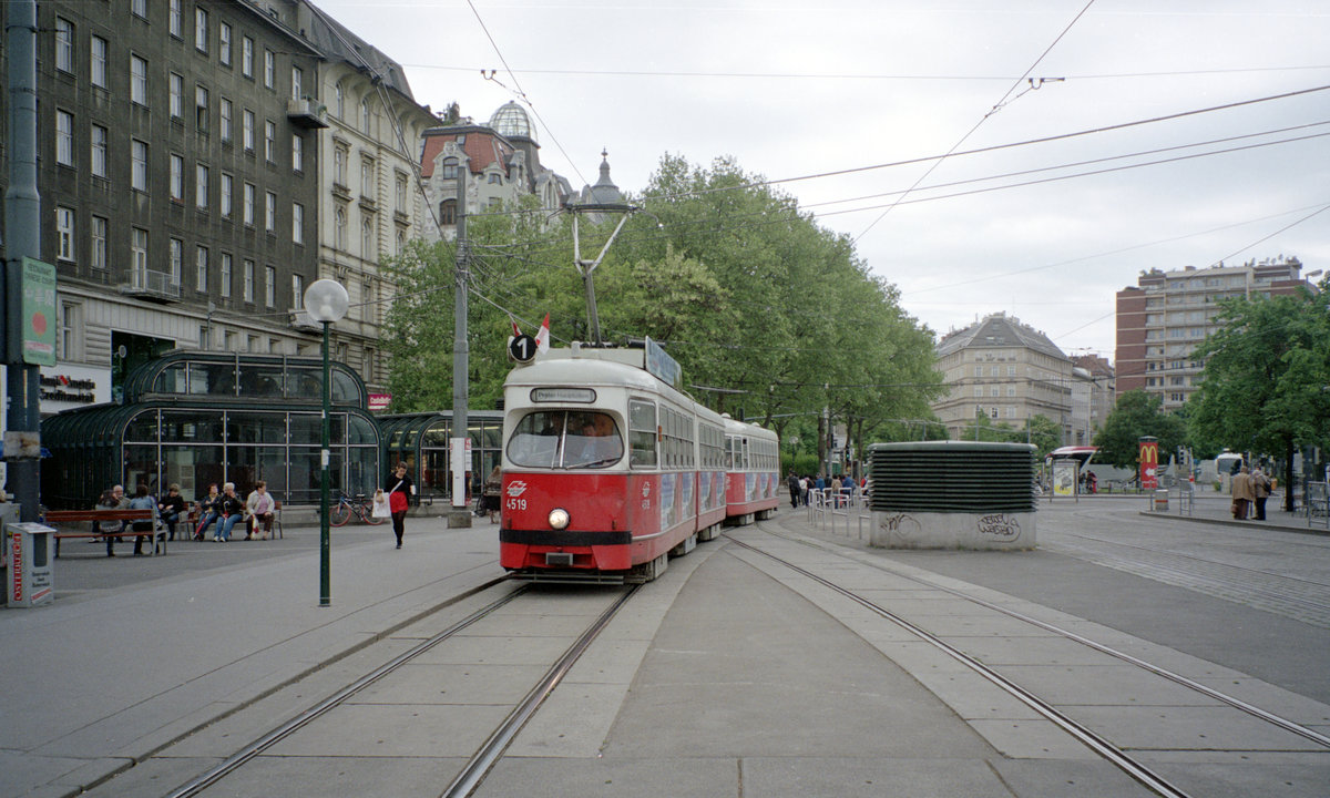 Wien Wiener Linien SL 1 (E1 4519 + c3 1261) I, Innere Stadt, Franz-Josefs-Kai / Schwedenplatz am 2. Mai 2009. - Scan von einem Farbnegativ. Film: Fuji S-200. Kamera: Leica C2.