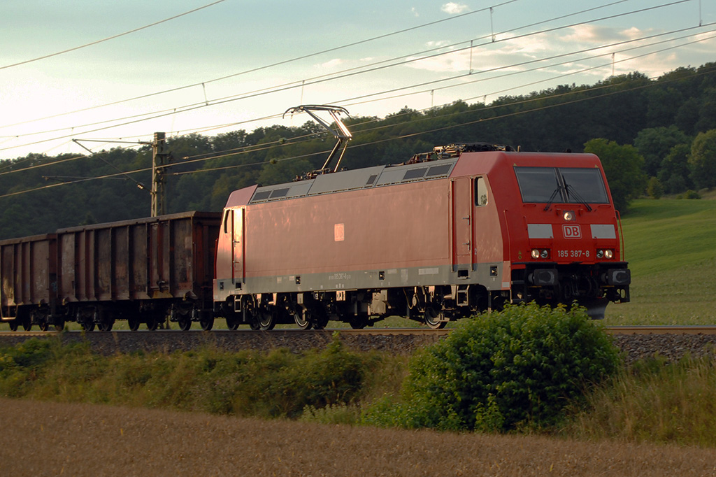 185 398-5 ist mit einen Autozug bei Gambach am 08.09.2017 unterwegs.