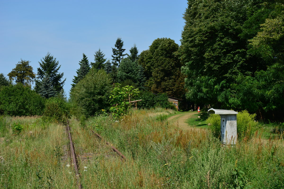 Seit dem 31.12.1998 ist hier kein Zug mehr gefahren und die Streckeverwächst langsam.